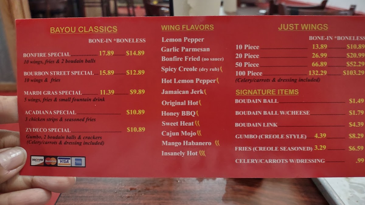 Introducing Bonfire Wings, the culinary gem located at 13030 Woodforest Blvd in Houston, TX. This brand has mastered the art of wing perfection, offering an array of flavors that make every visit a feast. Here, diners can relish options like Bonfire Fried, featuring perfectly marinated chicken, and the Garlic Parmesan wings, known for their rich and buttery profile. If you're in the mood for something with a kick, the Original Hot and Spicy Creole Rub will surely awaken your palate.